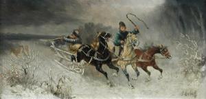 There ensued a lively debate about the thickness of the ice on the river, with Jekab insisting that if it could support all that snow, it could support a troika, and Gint pointing out that the weight of the troika would be added to the weight of the snow. In the end, a wager was made.